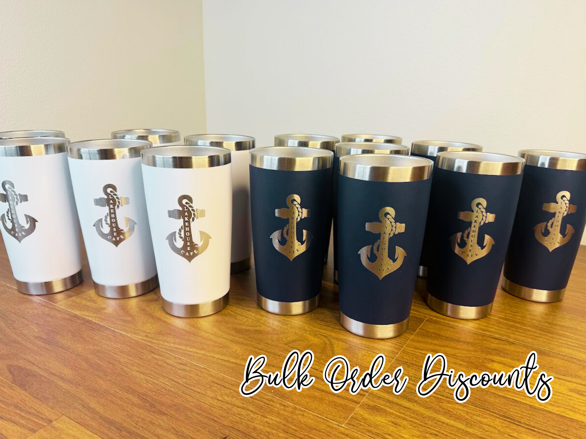 – 20oz double-wall insulated tumbler (keeps drinks cold for 24 hours / hot for 12) – Durable powder-coated finish in 12 color options – Laser engraved design — permanent + no fading or peeling – Upload your logo (SVG or PNG) OR personalize with a name – Choose horizontal or vertical engraving layout – Individual purchase or bulk packs (8-pack or 12-pack) – Discounted pricing for bulk orders – Perfect for small businesses, teams, coaches, staff gifts, weddings & corporate events – Local Waukesha pick-up available – Fast shipping anywhere in the U.S. – Mom-owned Wisconsin small business