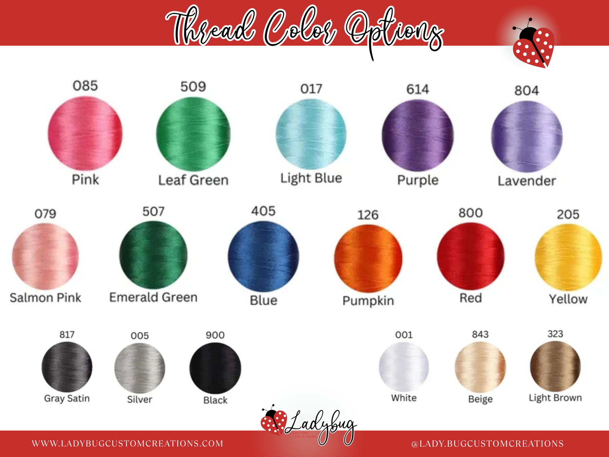 ✉️ Questions? Need a design change or have a question? Fill out our custom order form or email LadybugCustomCreationsSS@gmail.com—we're happy to help!